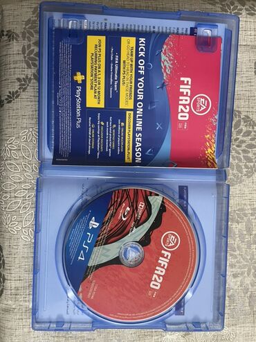 Qutu şəkillərdə görüldüyü kimidir: PS4 plastik qutusu, ön/arka örtük, daxili bələdçi və orijinal FIFA 20 diski.