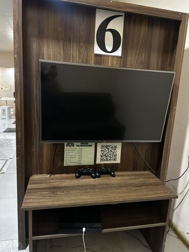 Qeyd: Divarda “Relax Playstation” başlıqlı siyahıda içkilər/snacklər üçün qiymətlər göstərilib, həmçinin QR kod yapışdırılıb.
