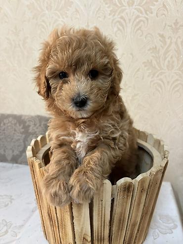 Mini/toy pudel balası - Cins: Pudel (mini/toy tip) - Rəng: Açıq qırmızı/aprikot tonları - Xüsusiyyətlər: Hipoallergen yun (tük tökmür), yumşaq qıvırcıq kürk, iri ifadəli gözlər - Xarakter: Ağıllı,...