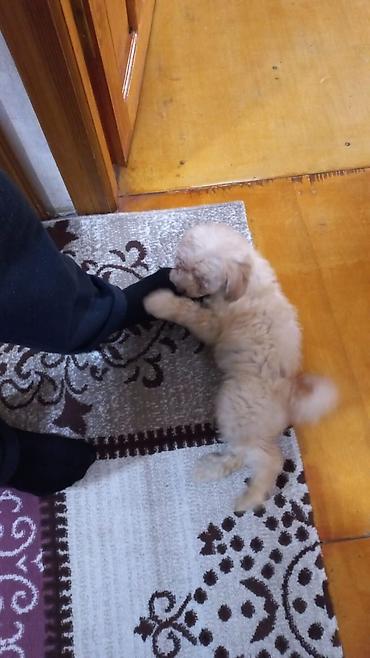Sevimli it balası – kiçik ölçülü, qıvırcıq tüklü - Cins tipajı: pudel/qolden qarışığına bənzər qıvırcıq, krem rəngli kürk - Boyut: kiçik–orta (ev şəraiti üçün əlverişli) - Xəz: yumşaq, az tökülən, ...