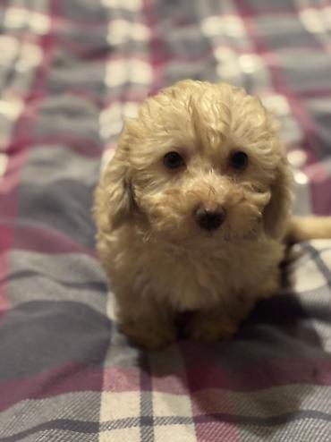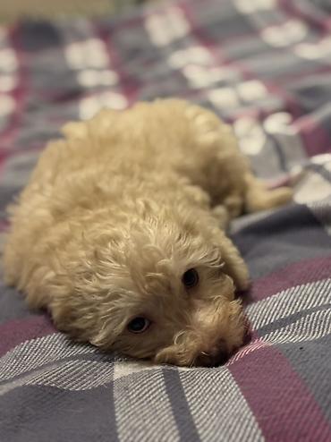 Cins: Kiçik ölçülü dekorativ it (ağ/şampan rəngli, buruq tüklü) Xüsusiyyətlər: - Miniatür bədən quruluşu, yüngül çəkili - Yumşaq, hipoallergen sayılan buruq tük örtüyü - Qara burun və iri tünd gözl...