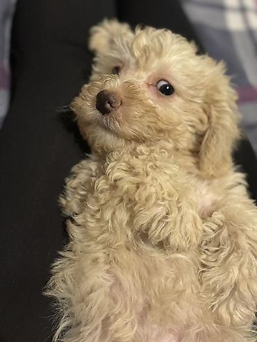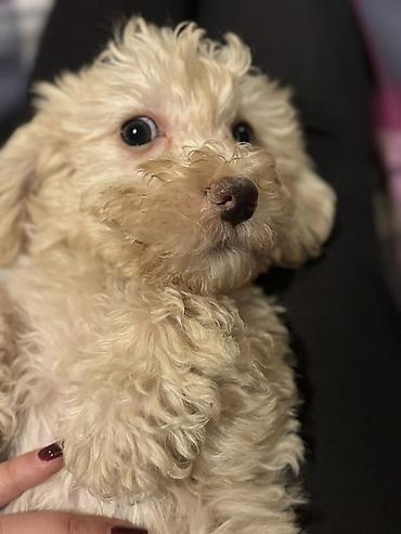 French Poodle (Toy/mini ölçüdə) balası - Rəng: krem/ağ - Yumşaq, qıvırcıq və az tük tökən yun (allergiyaya meylli ailələr üçün daha uyğun) - Ağıllı, sakit və ünsiyyətcil temperamenti ilə tanınır -...