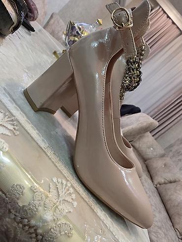 Qadın ayaqqabıları dəsti - Model 1: Bej rəngli, parlaq laklı