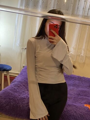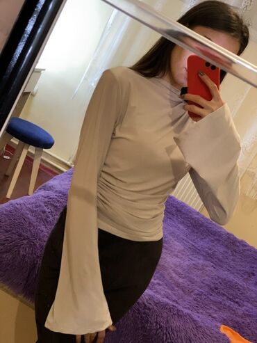 Sadə şalvar və ya ətəklərlə rahat kombinlənir, qollardakı geniş açılış romantik siluet yaradır.