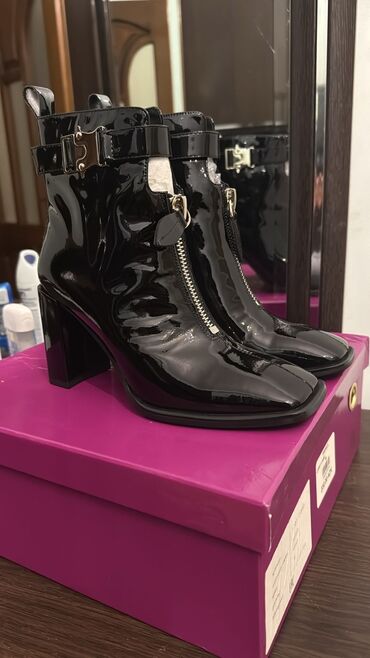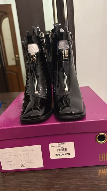 Şəhər içi və gündəlik şık kombinlər üçün nəzərdə tutulmuş elegant və modern botlar. Qutusu üzərində brend və model məlumatları mövcuddur.