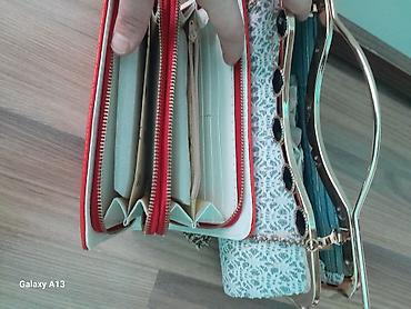 - Qırmızı rəngli uzun pulqabı/klatç: ön hissədə metal lövhə, ikiqat fermuarlı əsas hissə, çoxsaylı kart yuvaları və kağız pul üçün geniş bölmələr; incə metal zəncir qayışı ilə çiyində daşımaq mümkündür. Həm gündəlik, həm də şık kombinlərdə klatç kimi istifadə oluna bilər.