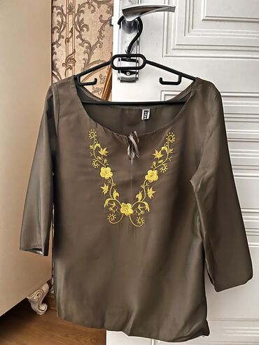 Qadın bluzu – tünd narıncı/qırmızı (burgundy) rəngdə, uzunqollu, öndən