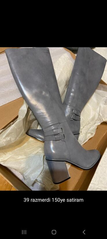 Qadın uzun çəkmə – Derihan - Rəng: qara - Material: hamar dəri görünümlü üst; iç hissə isti, tüklü astarlı - Dizayn: yumru burun, burunda və yan tikişlərdə xırda dekorativ daş/metal aksentlər - Ba...