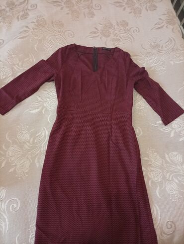 1) Sisley dizaynlı, qırmızı-bordo rəngli naxışlı paltar