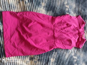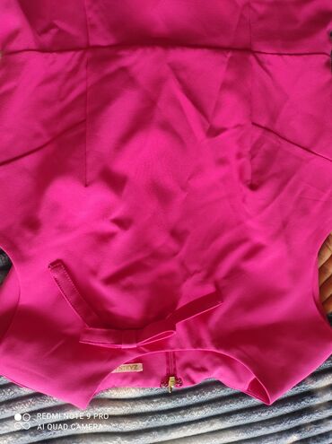 Qadın paltarı – çəhrayı, mini uzunluq - Model: düz kəsimli, bel xətti vurğulanmış - Rəng: canlı çəhrayı - Yaxa: dairəvi - Qol: qolçinsiz, çiyinlərdə genişləndirilmiş panellə struktur verilmiş - Ba...