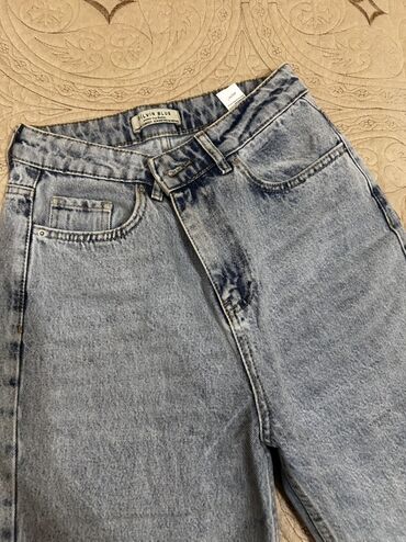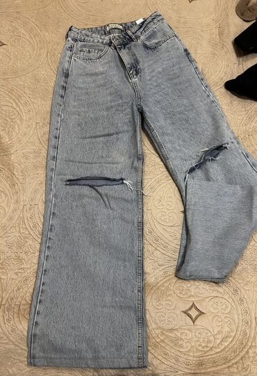 Yenidir geyinilmeyib.36azın alınıb 25m satılır. - Rəng: açıq mavi, yüngül yuma effekti - Kəsim: düz/relaks siluet, yüksək bel görünüşlü; ön panellərdə uzunlamasına tikiş xətləri və diz hissəsində d...