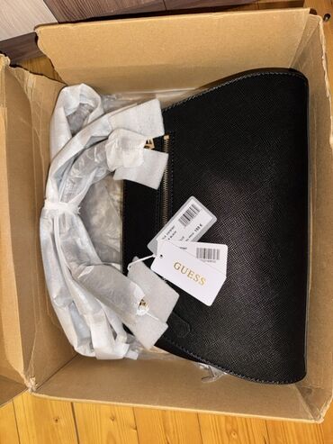 GUESS çiyin çantası - Rəng: qara, ön hissədə iri ağ GUESS loqosu - Material: teksturalı süni dəri - Forma: kompak tək bölməli korpus, qapaqlı dizayn - Kəmər: çıxarılan və tənzimlənən çiyin kəməri,...