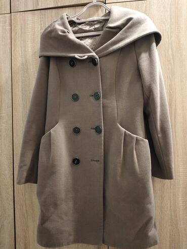 - Model: ikiqat sırada düymələrlə klassik palto, geniş kapüşonlu