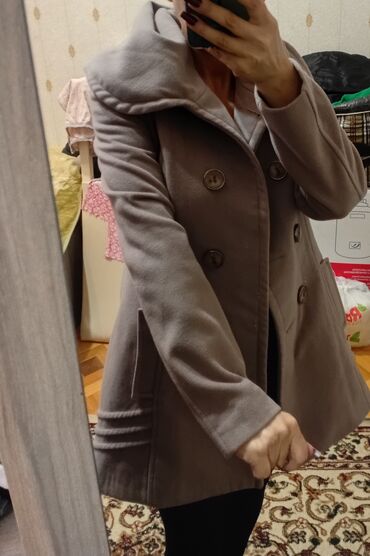 - Model: qısa/orta uzunluqda, qabarıq yaxalı, ikiqat düymələmə (double-breasted)