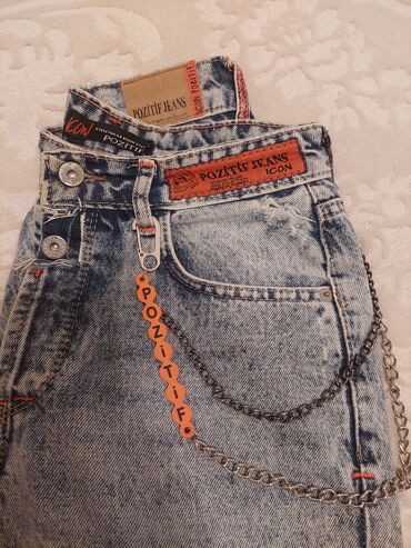- Kəmər yerləri, arxa hissədə brend etiketləri (POZITIF JEANS, ICON)