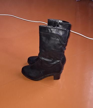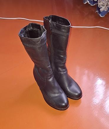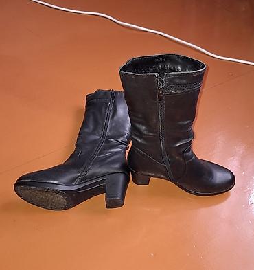 Qadın qara dəri çəkmə - Model: orta balaqlı, yan tərəfdən fermuarlı -