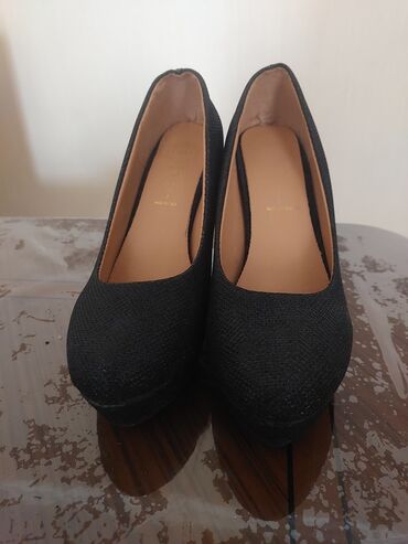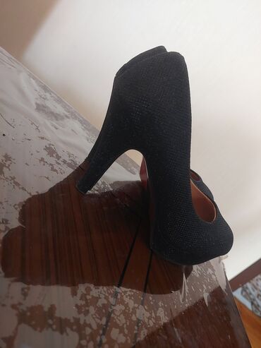 Məhsul: Qadın topuqlu açıq burun ayaqqabıları - Rəng: Qara - Ölçü: 36 (daxildə “36” işarələnib) - Dizayn: Parlaq daşlarla bəzədilmiş üst hissə, yan və arxa hissədə naxışlı tekstura - Burun forması...