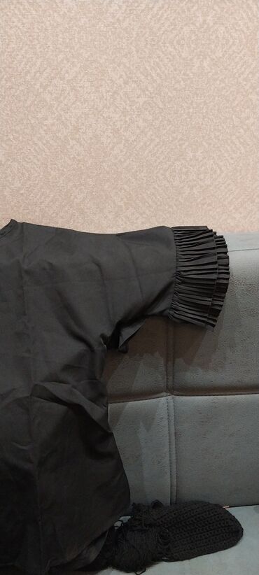 Qara qadın köynəyi/bluz - Rəng: tam qara - Yaxa: dairəvi (crew-neck) -