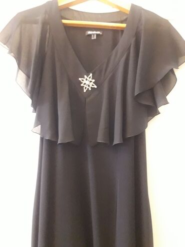 - Model: V-yaxa, qat-qat şifon volanlı qollar və sinə hissəsi