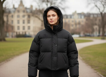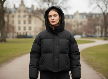 Qadın qısa puffer mont – qara rəng - Model: Oversize kəsim, qısa