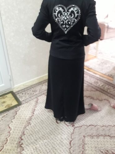 Qadın dəsti – qara rəngdə uzun ətək və fermuarlı gödəkçə