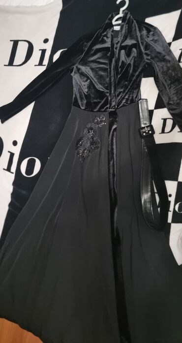Bir defe geyinilib Xl Qara məxməri uzun don - Parça: yumşaq, parlaq effektli məxmər - Model: öndən çarpaz V-yaka, uzun qollu - Bel hissəsində dekorativ zəncirvari aplikasiya (qızılı tonlarda) - Si...