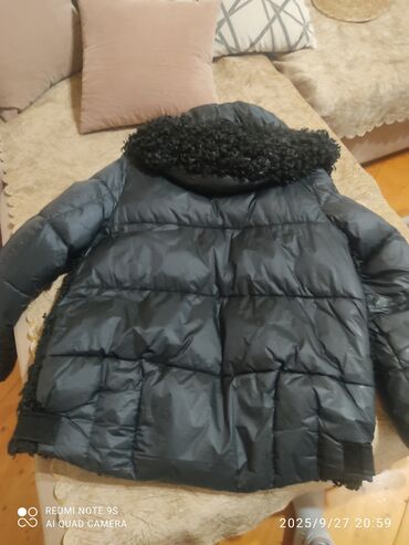 - Material: ön hissə və kapüşon qıvrım tüklü/şerpa tipli tekstura, qol və arxa hissə şişmə, suya davamlı parça.