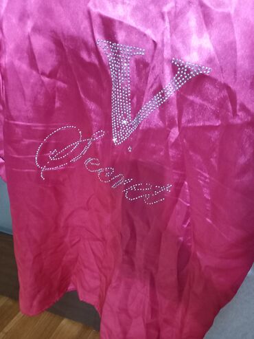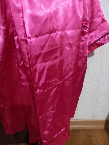 Xanımlar üçün 2 hissəli ev geyimi/pijama dəsti. XXL razmer səf alinib geyinilməyib. - Material: yumşaq, parlaq məxmər (velur) - Rəng: tünd tünd-şabalıdı/narıncı ton - Üst: nazik qayışlı, sinə hiss...
