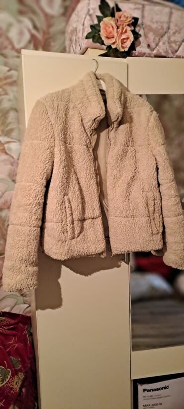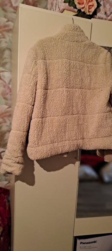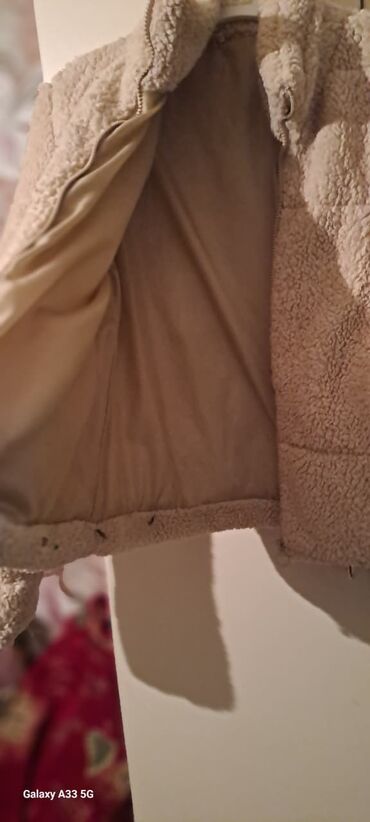 - Model: qısa oversize teddy tipli üst geyimi - Rəng: bej (taupe) - Material: yumşaq texturalı teddy parça, iç hissə flis/çəkmə tipli isti qat - Ölçə: M (38–40) — etiketdə göstərilib - Dizayn deta...