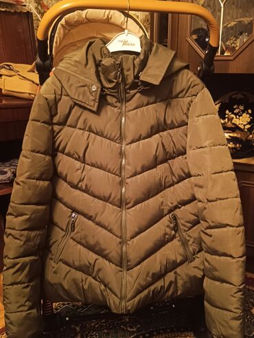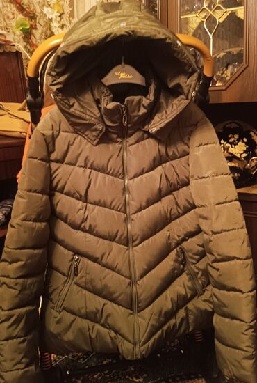 Qadınlar üçün qısa, dolğu içlikli qış gödəkçəsi (120 manata alınıb) - Rəng: zeytun-yaşıl - Model: bel hissəsi yığma effektli, qısa kəsim - Material: yastı tikişli, isti saxlayan dolğu; küləyə dava...