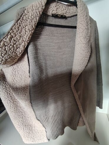 Bej rəngli qadın 2li dest kardiqan - Model: uzun, A-kəsim siluet;