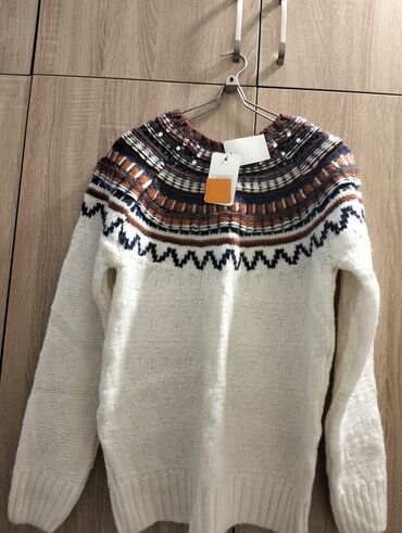 Gündəlik istifadə və soyuq hava üçün rahat, isti və gözəçarpan naxışlı sviter. Etiketləri üzərindədir, bütün məlumatlar şəkillərdə göstərilib.