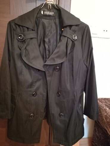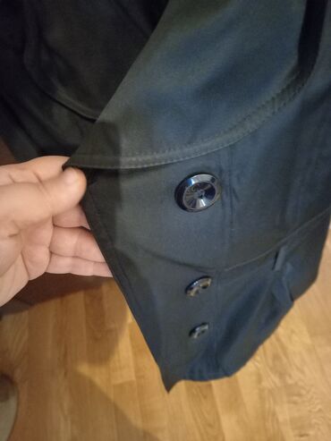 Bej rəngli qadın trençkot - Klassik ikiqat düyməli (double-breasted) dizayn - Kəmərli model: eyni materialdan bağlama kəməri və arxada kəmər halqası-düymə - Geniş yaxalıq və üst qatda dekorativ ya...
