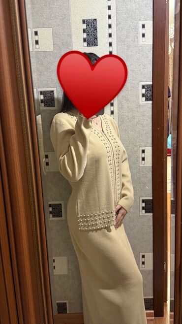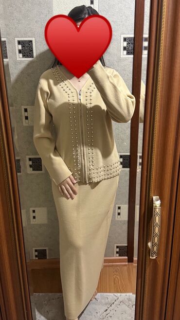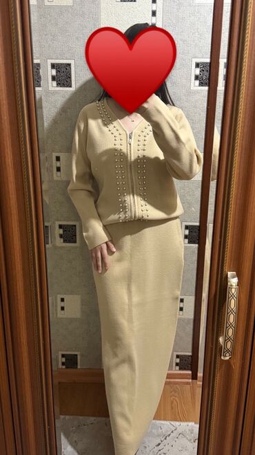 Zərif açıq bej rəngli qadın kostyumu – blazer və şalvardan ibarət dəst. - Brend/etiket: NK, Made in Turkey - Ölçü: EUR 38 (USA 6, MEX 28) - Material hissiyatı: hamar, axıcı parça; iç hissəsi atlas...
