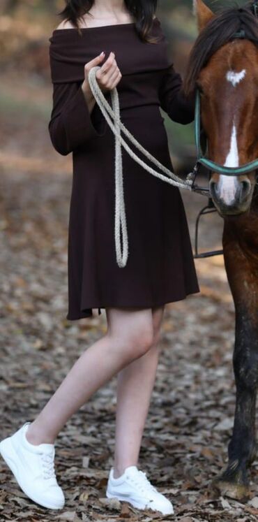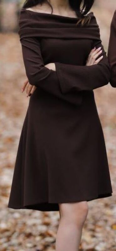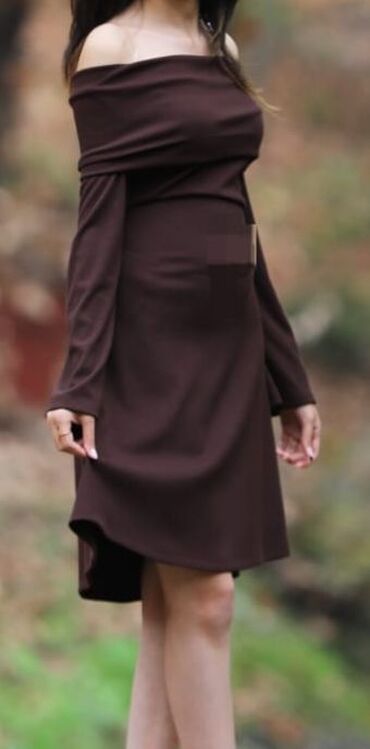 Qadın paltarı – tünd qəhvəyi, off-shoulder model