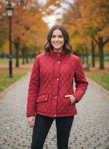 EndirimsizQadın üçün qırmızı rəngdə (romblı tikişli) yüngül gödəkçə.