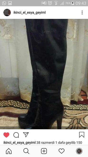 Qadın uzun çəkmə – qara, parlaq materialdan. Dizə qədər model, hündür