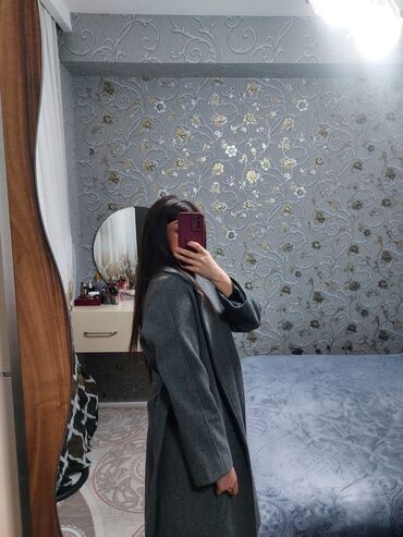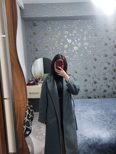 Qadınlar üçün boz rəngli palto/kardiqan - Model: qolsuz deyil, uzunqol, dizə yaxın uzunluq - Kəsim: açıq önlü, yumru şal yaxalı; kəmərlə bağlana bilir (şəklərdə kəmər var) - Parça: yumşaq, qalın v...