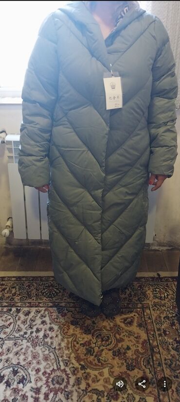 Qadınlar üçün qışlıq şişmə palto - Rəng: zeytun/boz ton - Ölçü: 50 (etiketdə) - Uzunluq: orta (bud səviyyəsi) - Kapüşonlu, qalın və isti doldurmalı - Ön hissə tam uzunluqlu səkkizbucaqlı tikişli n...