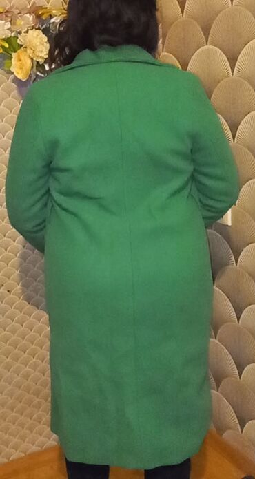 Qadın palto - Rəng: tünd yaşıl - Model: klassik düz kəsim, dizaltı uzunluq - Yaxa: ingilis tipli yaxa (klassik şal yaxa görünüşü) - Bağlanma: ön hissədə tək səsli düymə - Ciblər: iki ədəd yan giri...