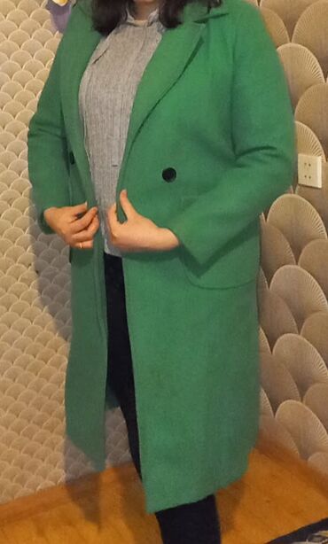 Qadın palto – tünd yaşıl, kapüşonlu, ikiqat düyməli model - Brend: Shalini (etiketdə) - Ölçü: L - Rəng: tünd yaşıl - Material: qalın, isti parça; iç hissə – tikməli (kapitone) astar - Dizayn: iki ...