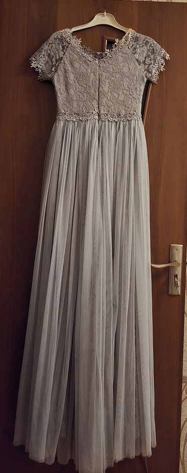 Zərif ziyafət geyimi – boz/gümüşü tonlarda.