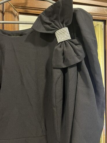 Ziyafət donu – 30 AZN - Rəng: qara - Stil: bədənə oturan, midi uzunluq - Yaxa: balıqçı tipli qapalı yaxa - Qol: qısa qol - Çiyin detalları: asma daş/sancaq bəzəkləri - Etek hissə: asimmetrik kəsim...