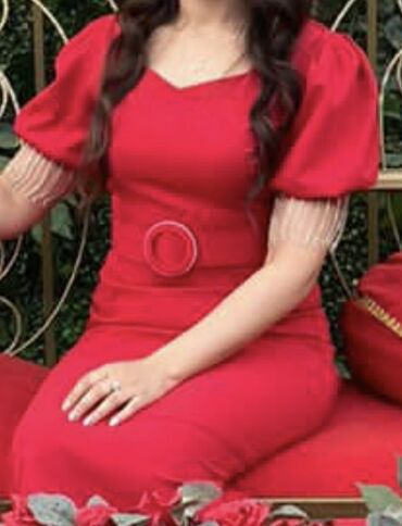 Qırmızı atlas/pliseli ziyafət paltarı - Parça: parlaq atlas görünüşlü material, axıcı tekstura - Rəng: canlı qırmızı bir defe bir saatlig geyilib 180 azn alinib - Üst hissə: büstüm formalaşdıran, ...