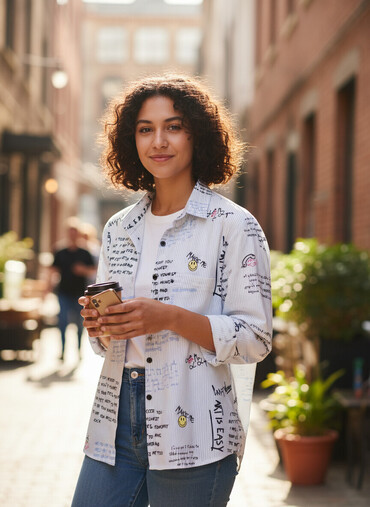 Qadın köynəyi – naxışlı yazılar və zolaqlı dizayn