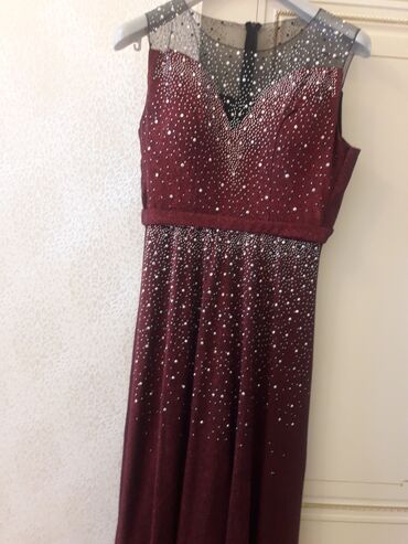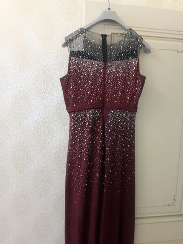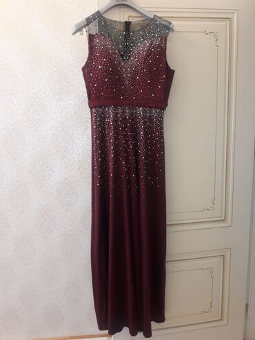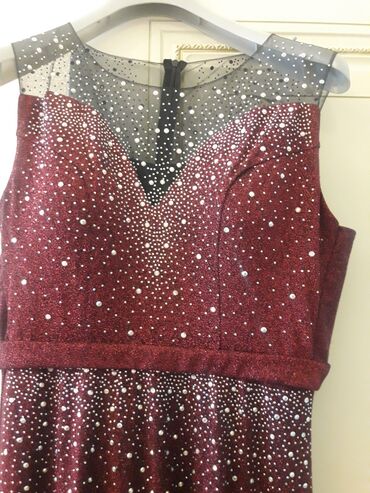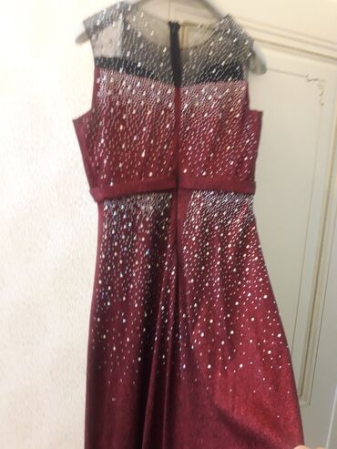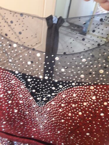 Bordo rəngli ziyafət donu. Yenidir. Razmer uyğun olmadığı üçün satılır. Real alıcıya endirim var. - Model: Maxi uzunluqda, A-kəsim ətək - Rəng: Dərin bordo - Üst hissə: Şəffaf tül üzərində gümüşü...