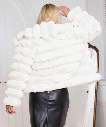 Qadınlar üçün ağ rəngdə xəz təsirli qısa kürk