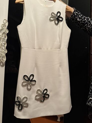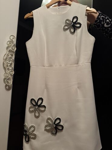 Cemi 1 defe geyilib, uzunluğu dizden gelir,realda çox gözeldir. Xladyden alınıb Qısa ağ qaşlı kokteyl/şənlik paltarı - Rəng: Ağ, gümüşü daş və qaşlarla bəzədilmiş - Üst hissə: Şirin-büst (sweethe...