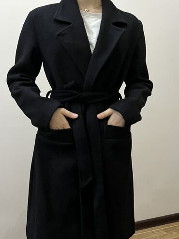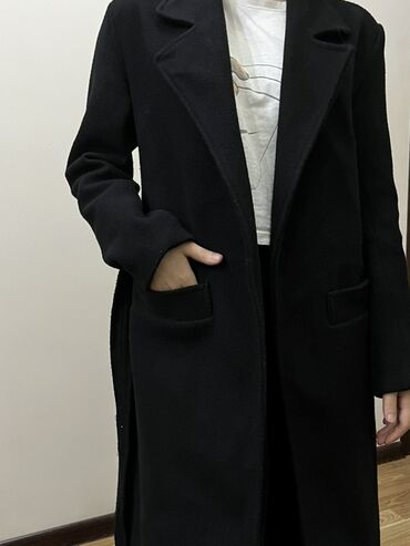Qadınlar üçün klassik qara palto - Uzun model, dizaltı kəsim -