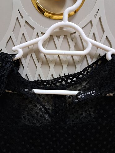 Qara zərif don – ESPENICA, ölçü L - Model: düz kəsim, dizə yaxın uzunluq - Yuxarı hissə və qollar: çiynə qədər incə güpür/topdan krujeva, çiçək naxışlı - Qol: 3/4 uzunluqda, aşağısı volanlı, kruje...